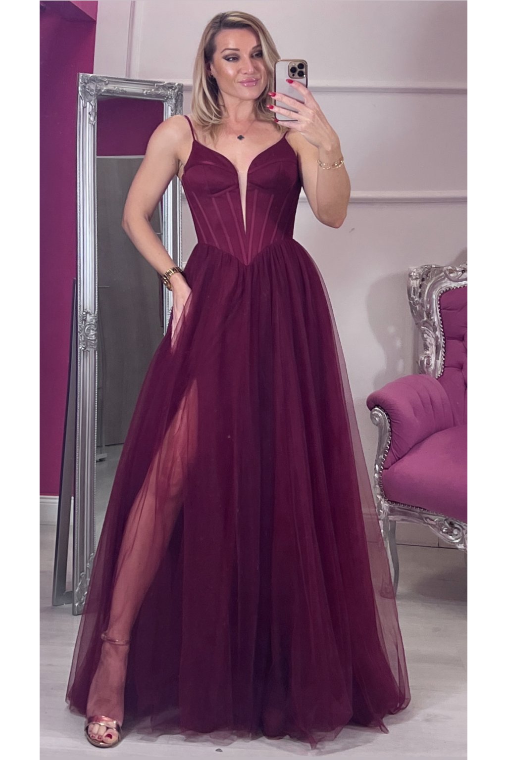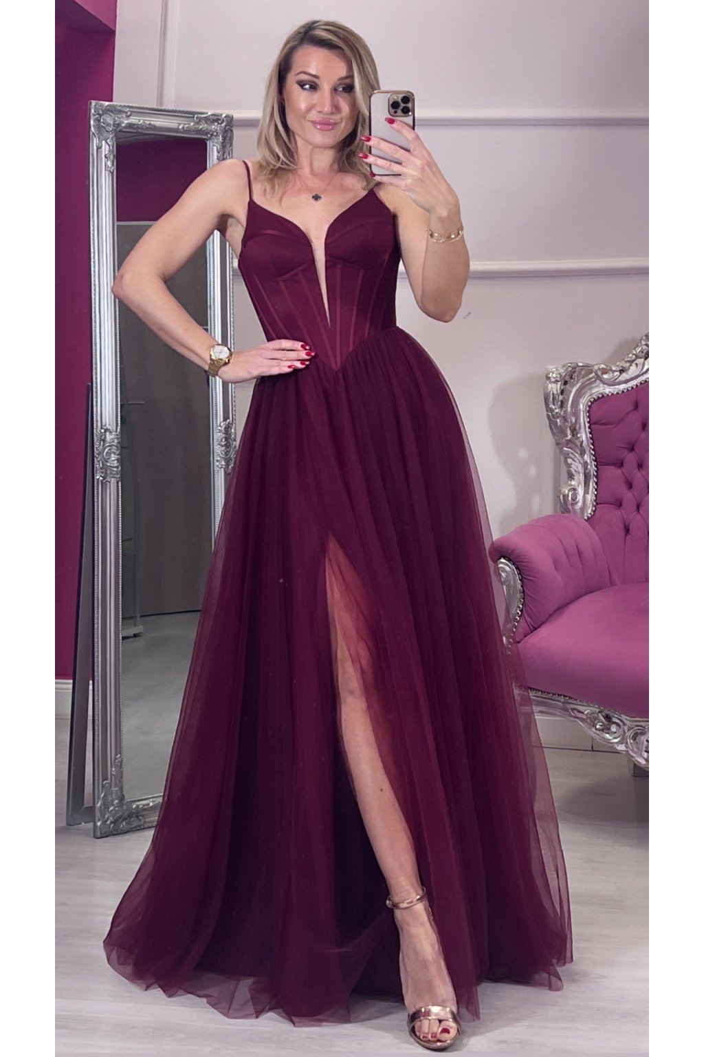 Bordove princeznovske šaty