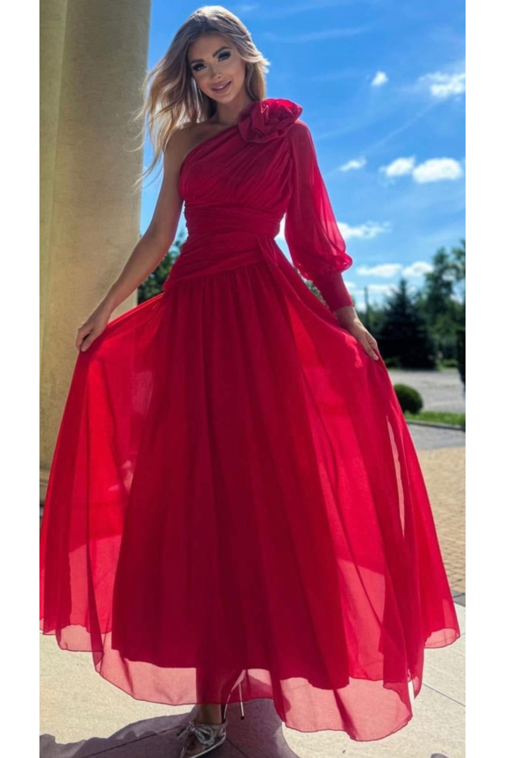 Unikátne spoločenské šaty na jeden rukáv. Lachkučká šifónová látka a extravagantny strich vyčarí luxusný vzhlad. V týchto šatoch budete jedinečná! Šaty sa zapínajú na boku so zipsom a majú aj výstuž. Šaty majú mierne elastický material.