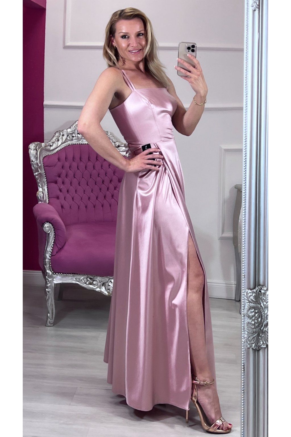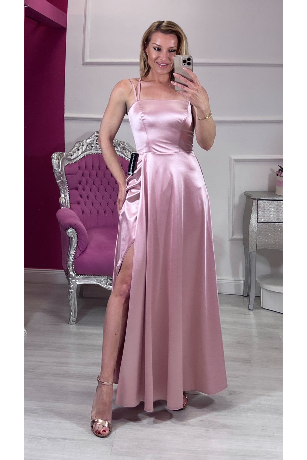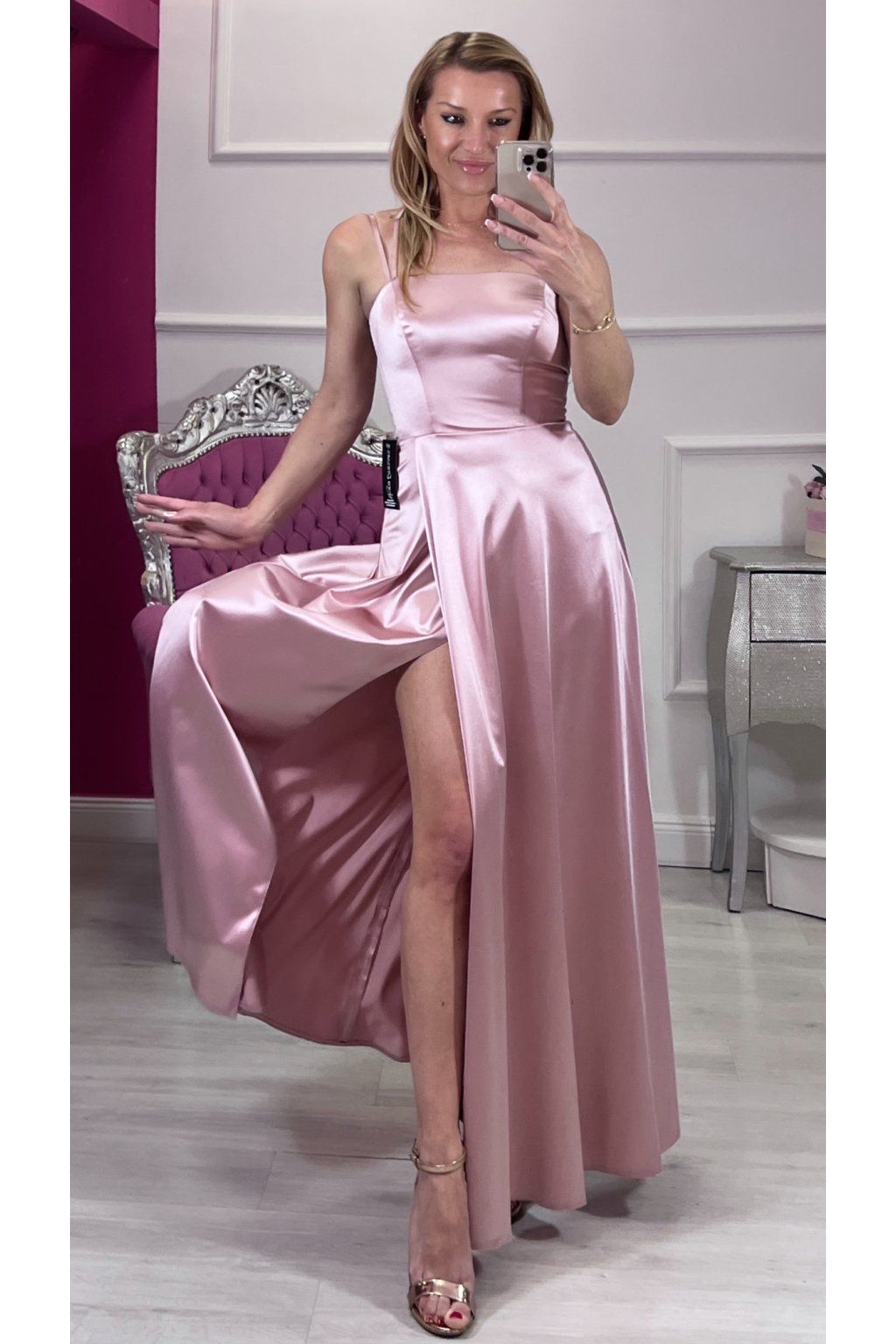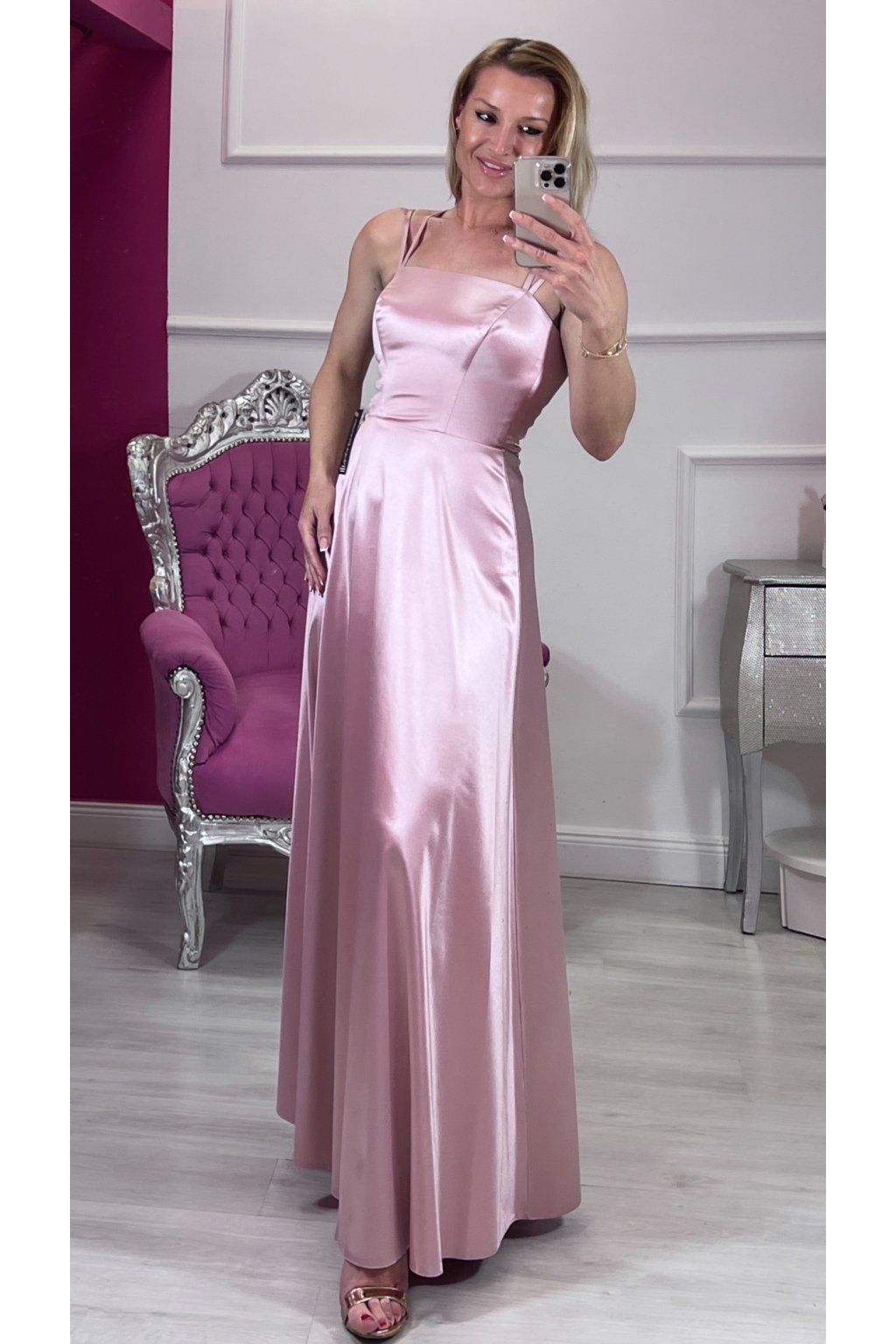 Dlhé saténové šaty s odhaleným chrbtom púdrové