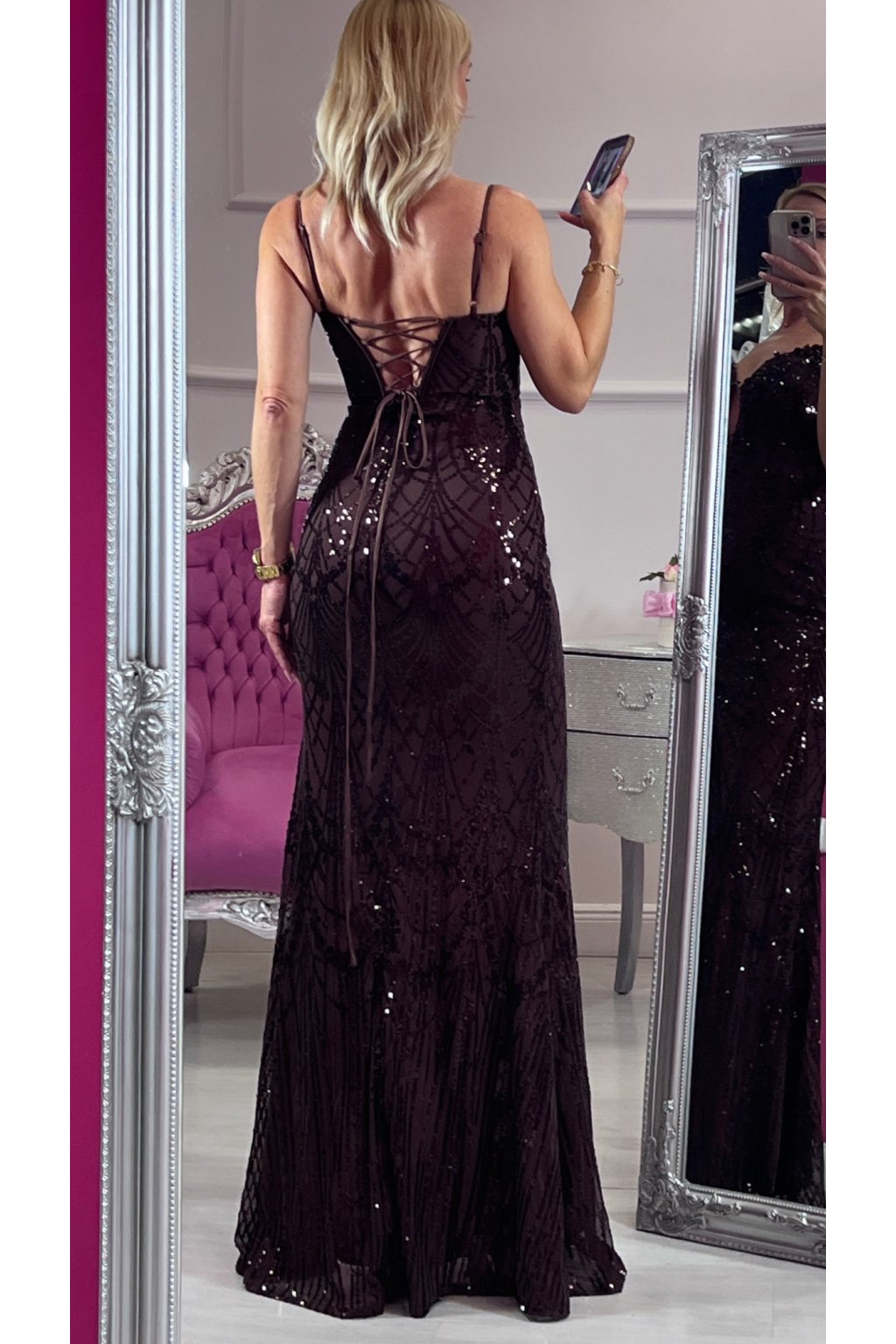 ✨ Luxusné priliehavé šaty s viazaním na chrbte – hnedé ✨