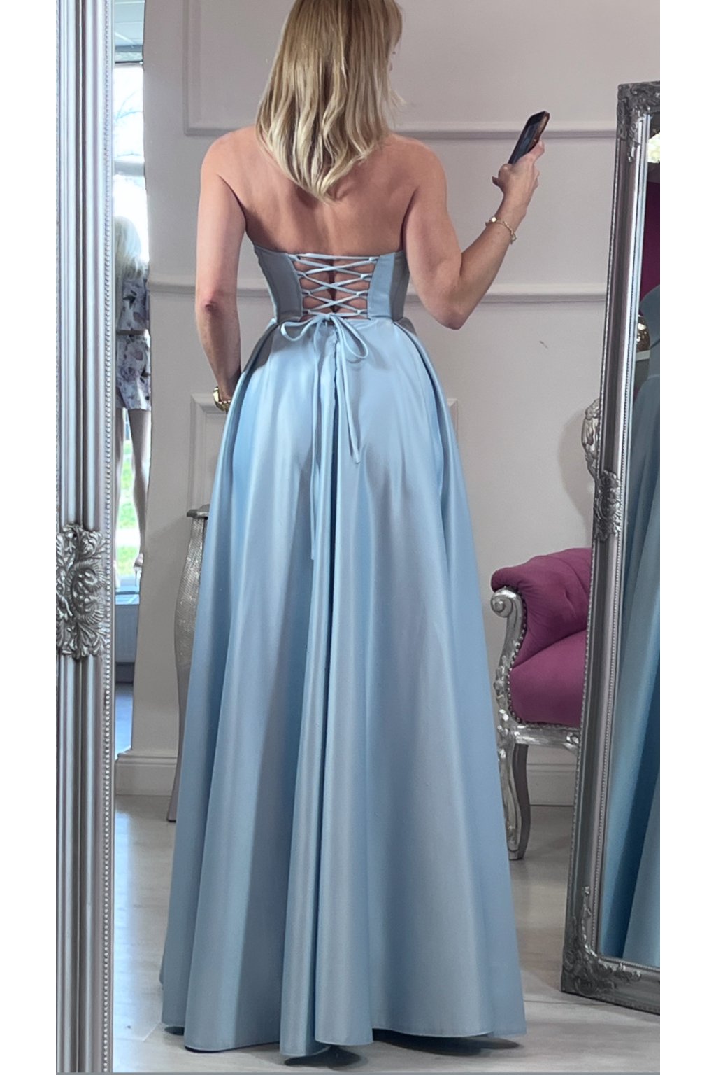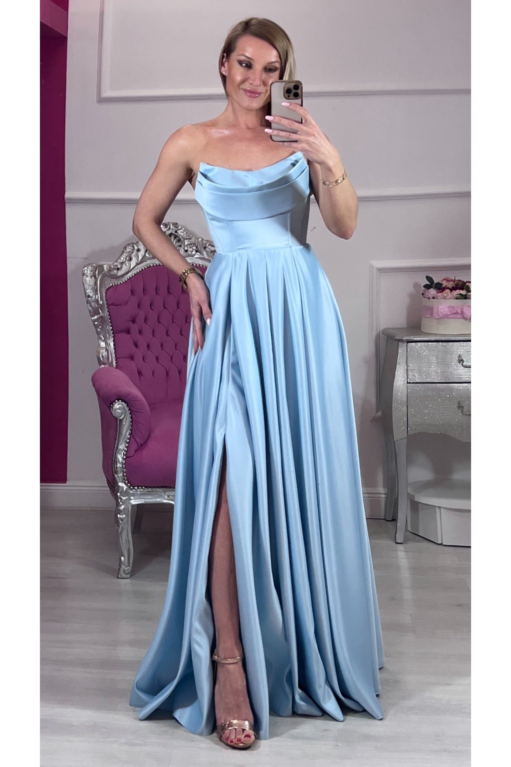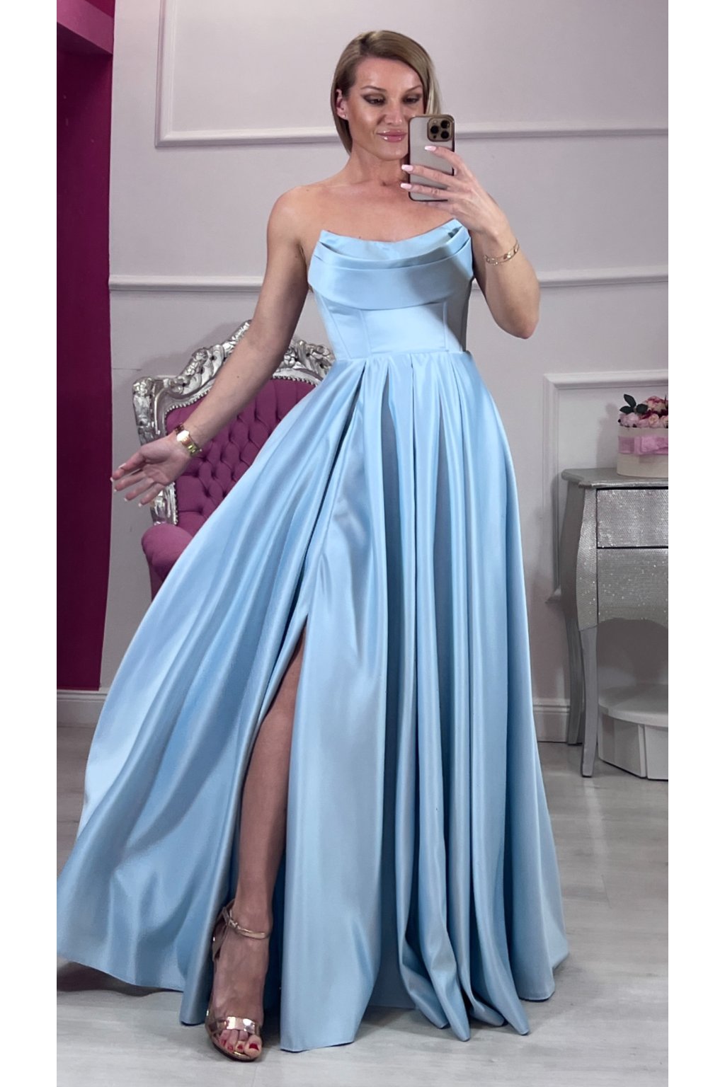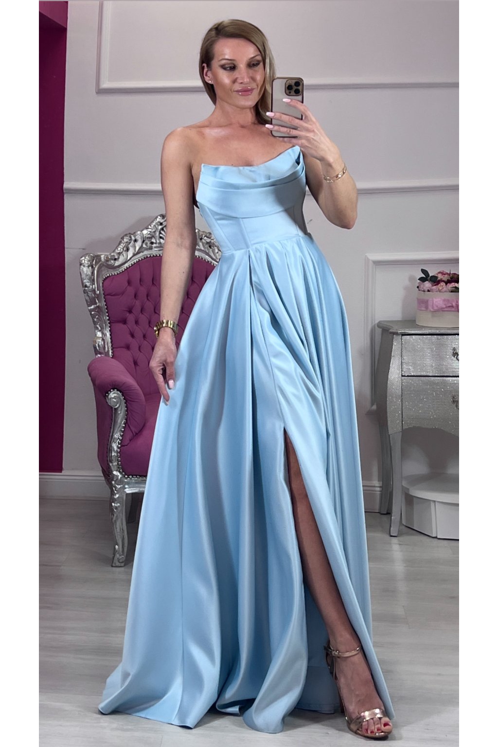 ✨ Dlhé svetlomodré korzetové šaty s rozparkom ✨