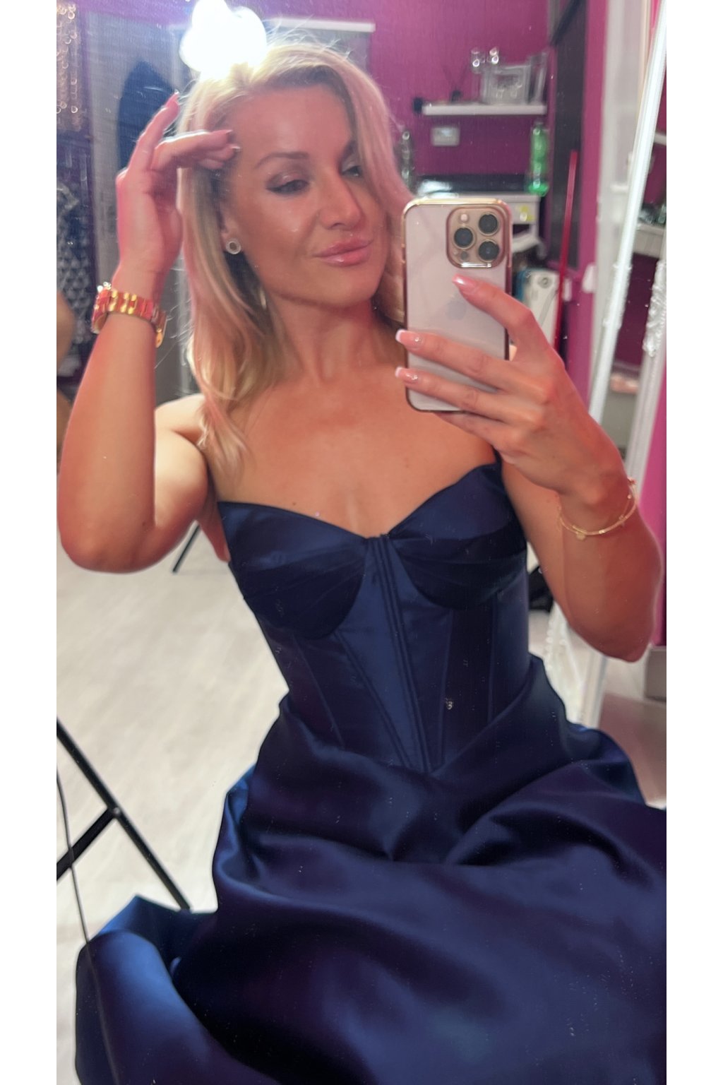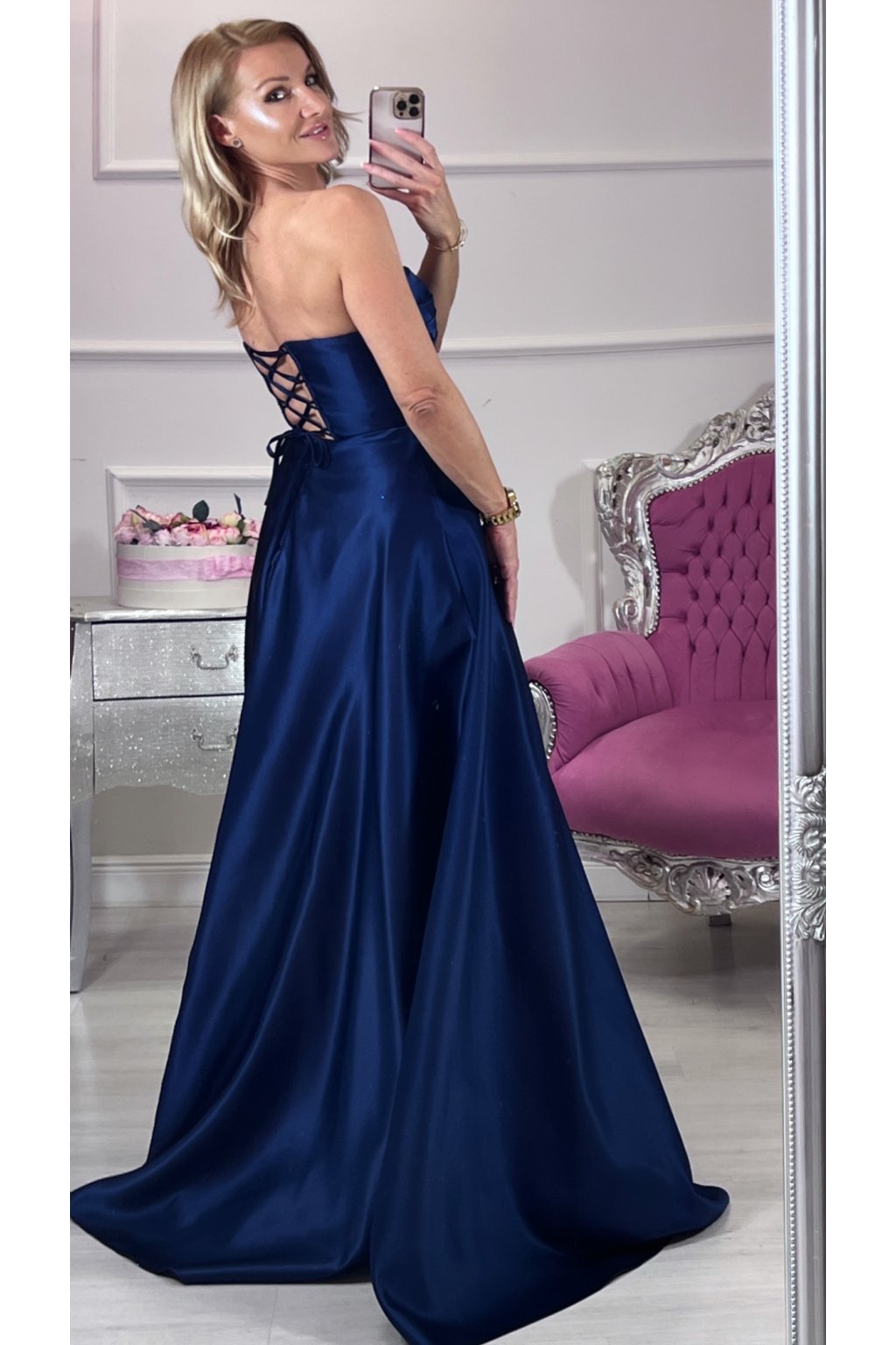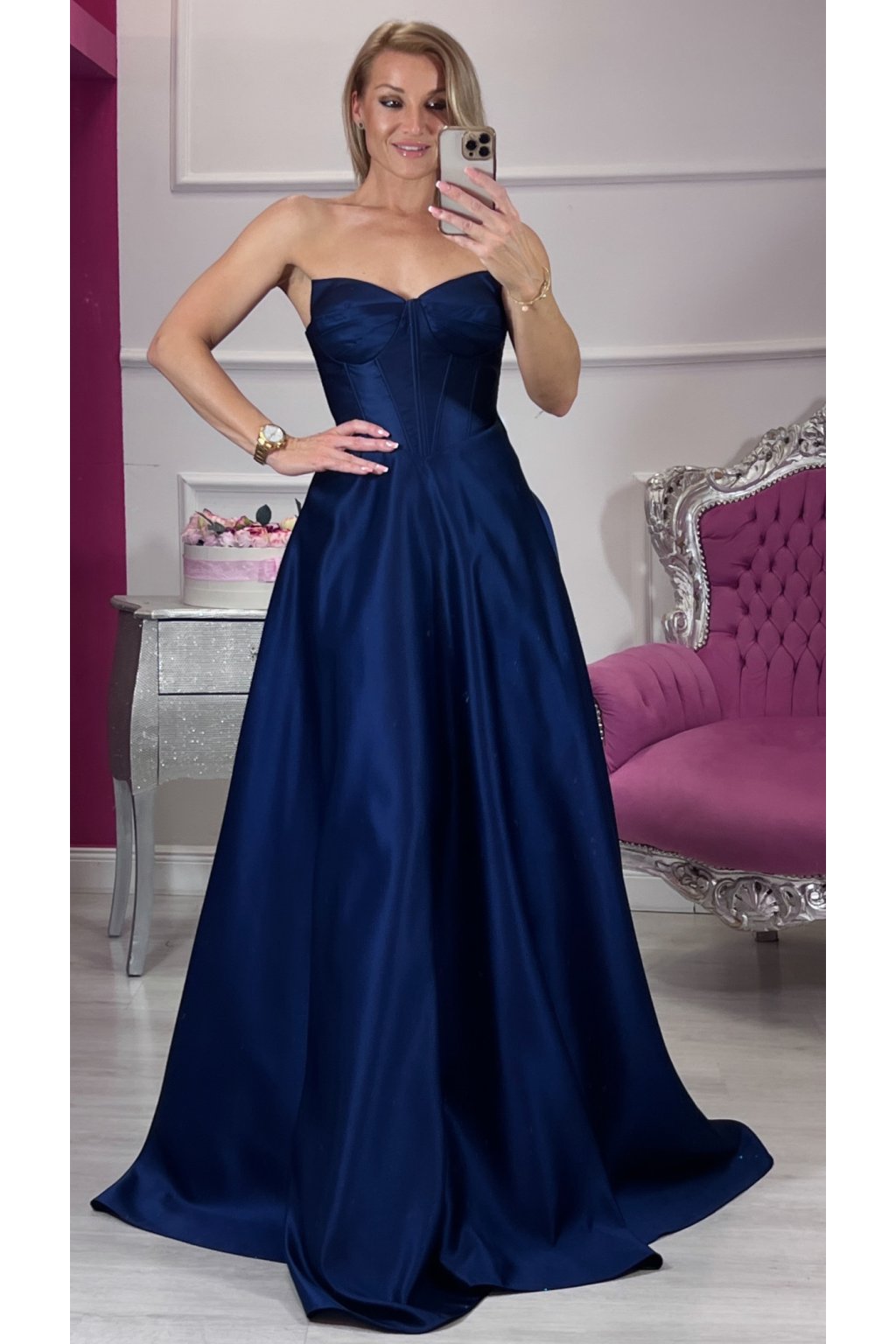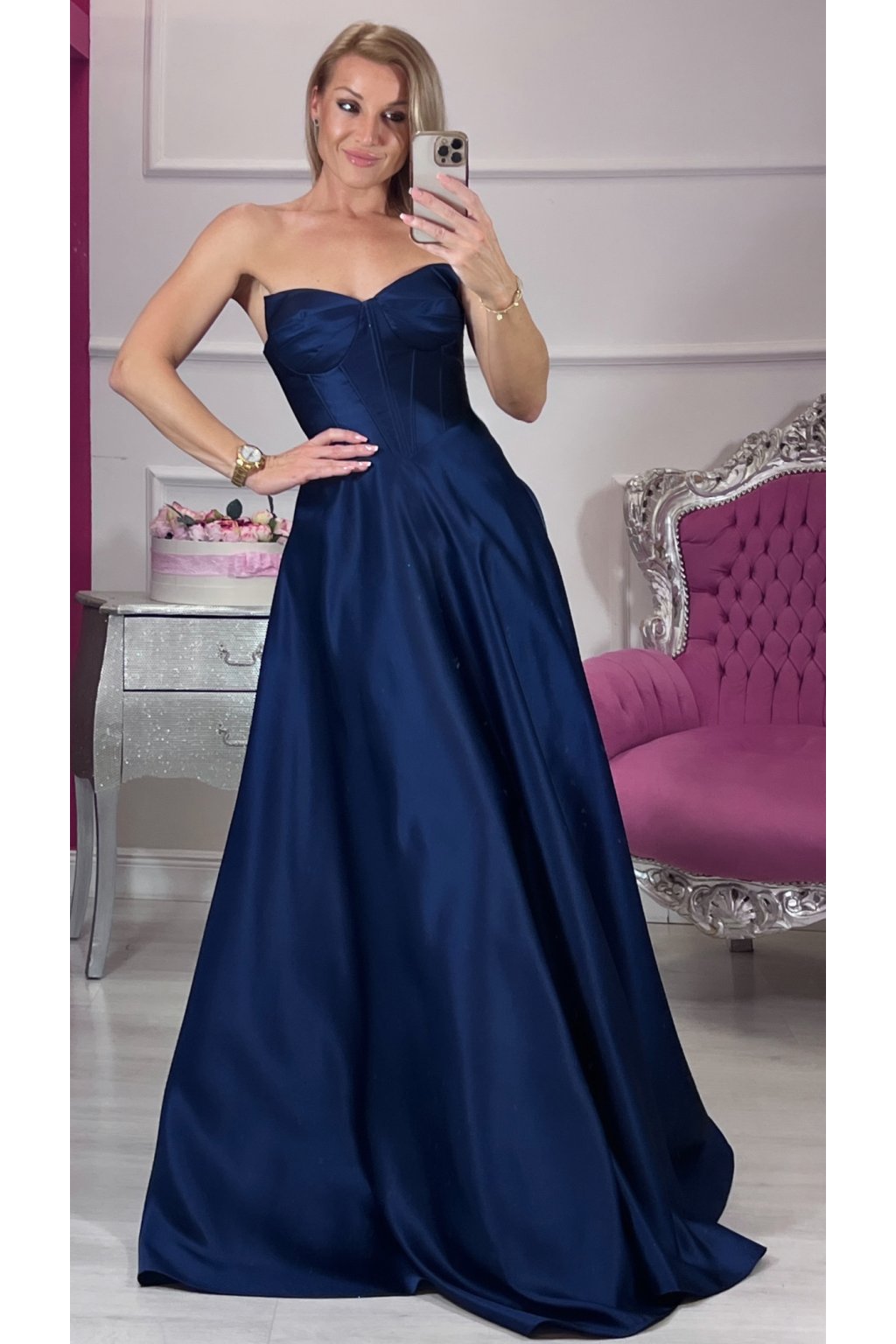 💙Tieto korzetové šaty v námorníckej modrej farbe spájajú luxus, eleganciu a zmyselnosť v jednom. Pevný korzet s kosticami a šnurovačkou krásne tvaruje postavu, podprsenková vystužená časť dodáva oporu a rafinovaný vzhľad. Bohatá, štýlovou látkou riasená suknička pôsobí honosne a výrazne, no zároveň zostáva jemná a ženská. Šaty sú doplnené o ramienka pre variabilné nosenie. Ideálny kúsok pre výnimočné príležitosti, ktorý zaručene zaujme.