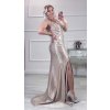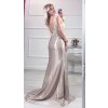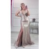 Jedinečné šaty s pierkami, s odhaleným chrbtom, s vlečkou a s rozparkom. Šaty zdobia našité kamienky vo výstrichu vpredu aj vzadu. Šaty majú mierne elastický material a sú aj vystužené.